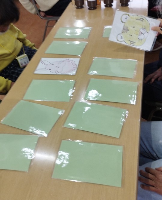 健康くらぶの職員が作ってくれた干支のカードで、神経衰弱も行いました。