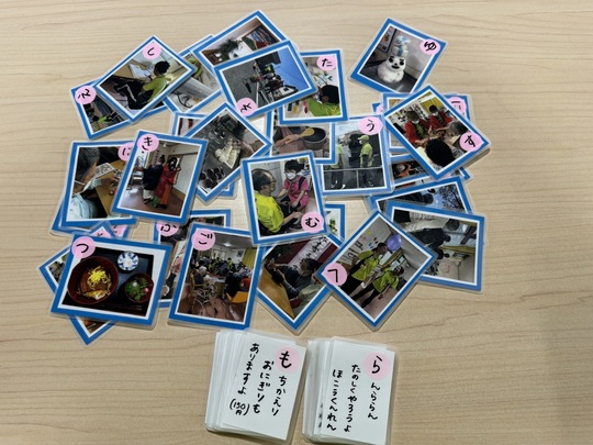 健康くらぶの事をカルタにした、手作りのゲームです。