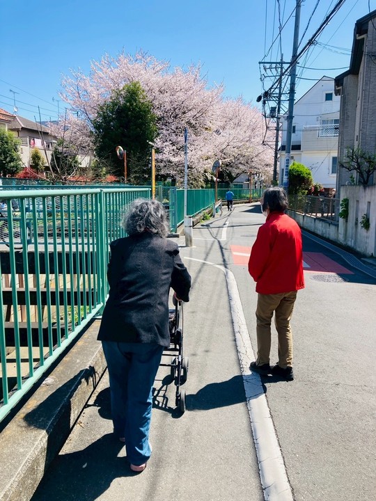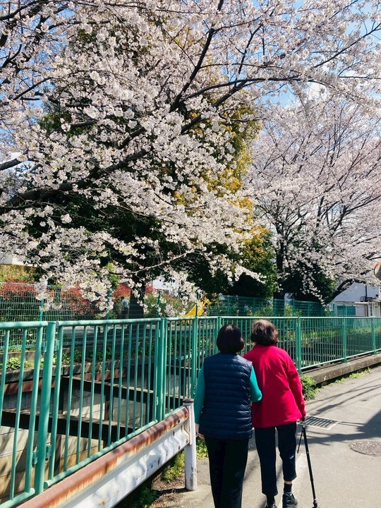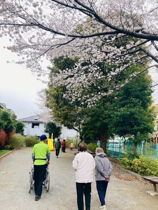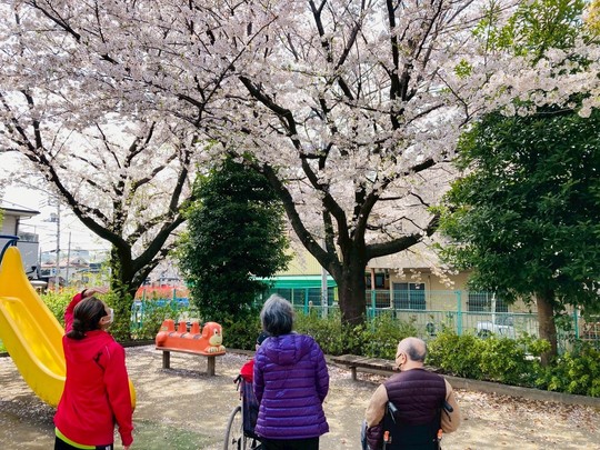 屋外歩行訓練に出たら、桜が咲いていて近所の広場で満開の桜を眺める事ができました♡