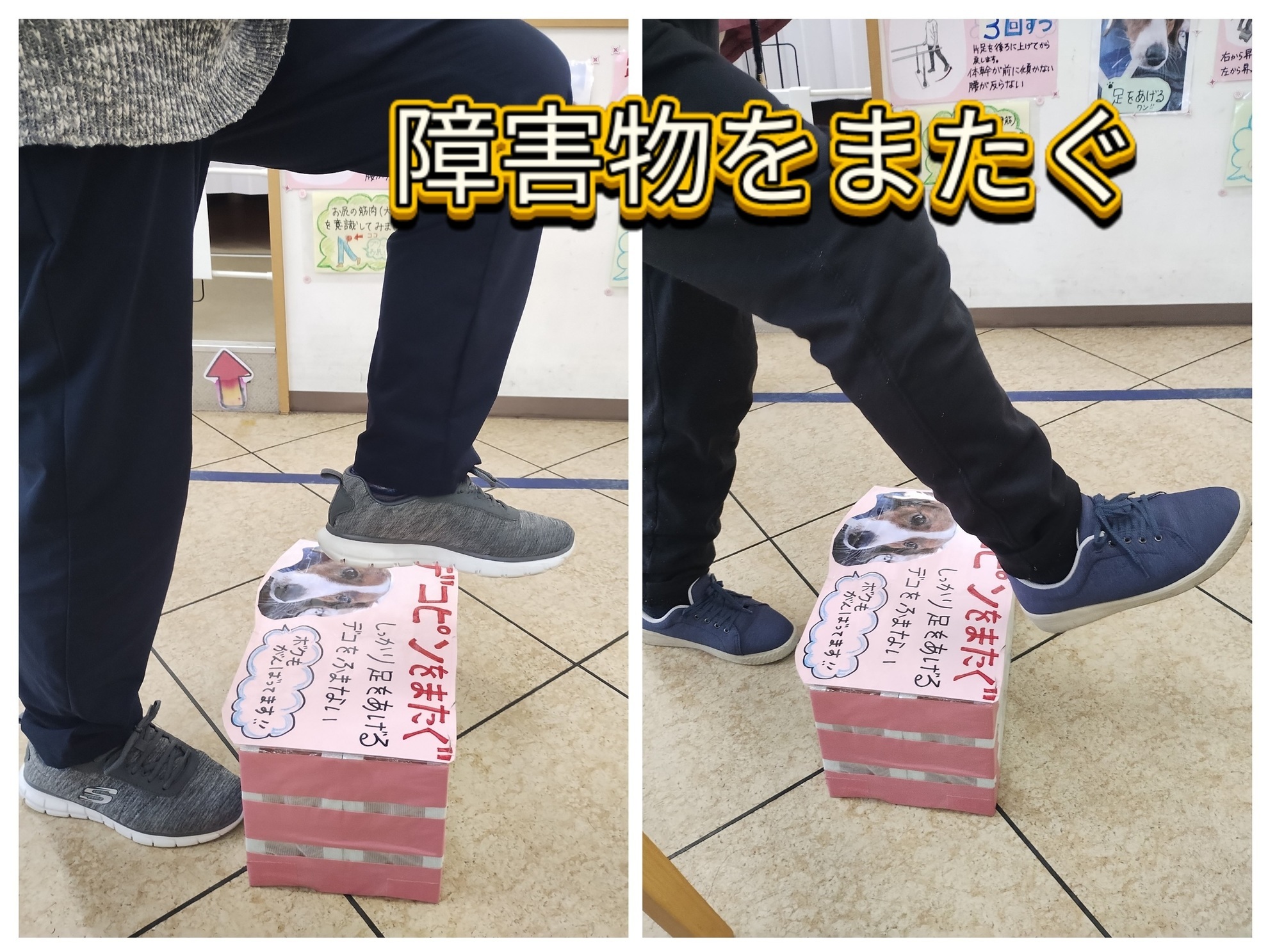 障害物をまたぐ効果→筋力向上・バランス能力向上、転倒予防。