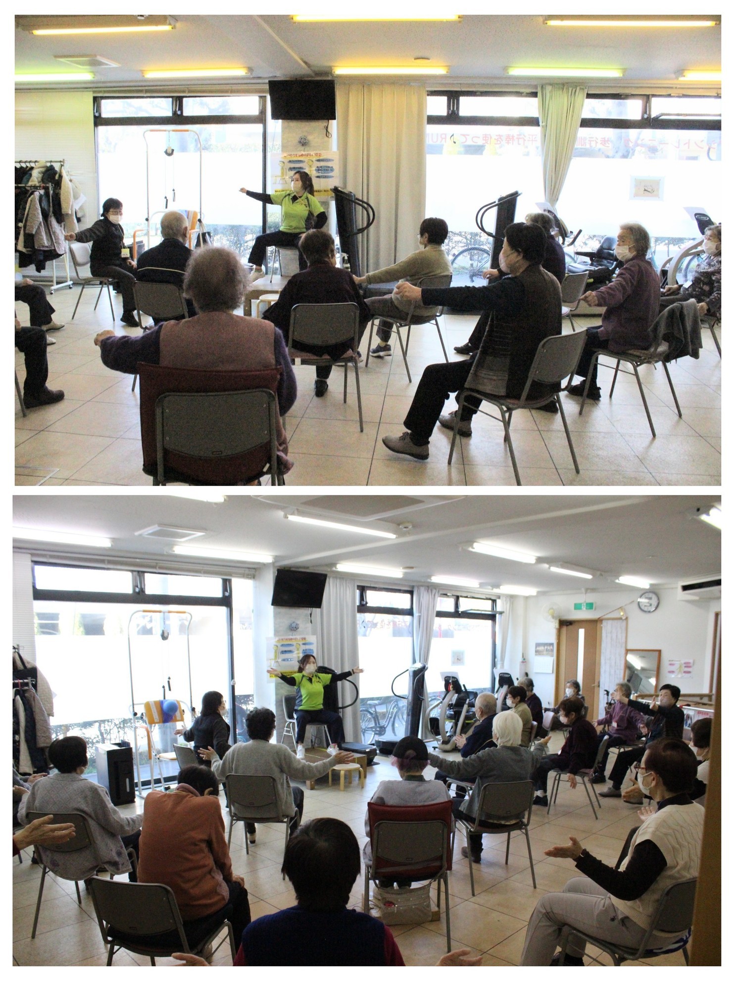 椅子に座って行う体操を中心に所長とスタッフで住吉会館ルピナスに行ってきました。